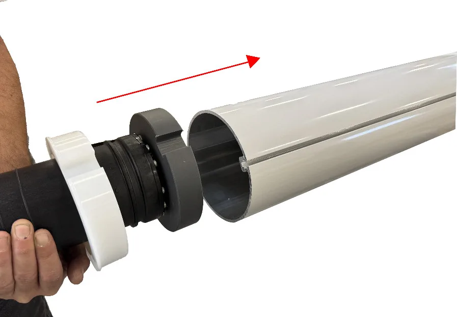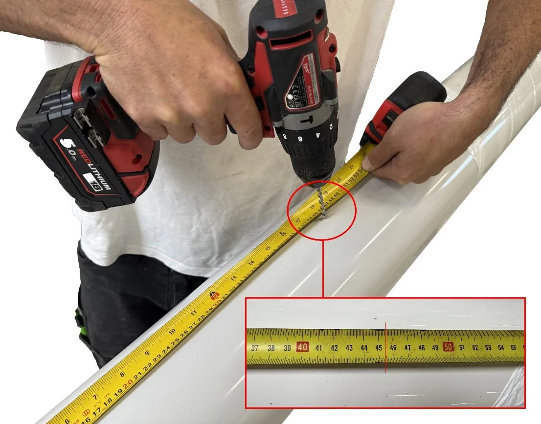 Étape n°1 : Insérez le moteur à l’intérieur du tube Lorsque vous insérez le moteur à l’intérieur du tube, veillez bien à ce que les encoches correspondent Une fois que le moteur est complétement installé Étape n°2 : Percez un trou à 45,5 cm en utilisant un foret de 5 Étape n°3 : Une fois le trou percé, utilisé une fraise de 16,5 pour percer en surface Étape n°4 : Ensuite, insérez un manchon isolant dans la fente puis rajouté une vis à tête hexagonale A4 N’oubliez pas de répéter cette étape de l’autre côté du moteur ! Moteurs disponibles : SIREM COVEO 120NmSIREM COVEO 200NmSIREM COVEO 300Nm